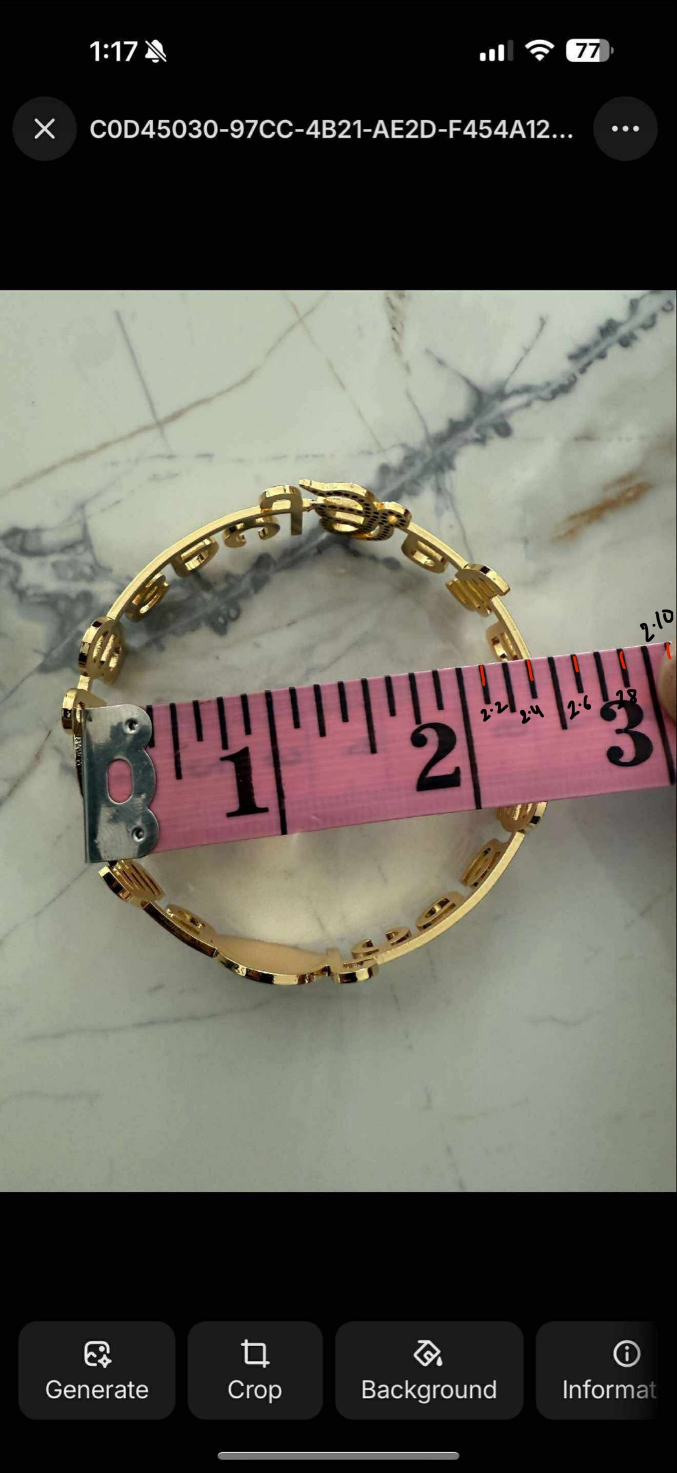 See attached photo how to measure your bangle , measure with inchitape if it ends on 2.2 then place order for 2.2